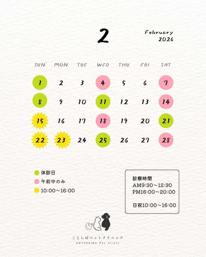 少し遅れましたが、2月の休診日をお知らせいたします。